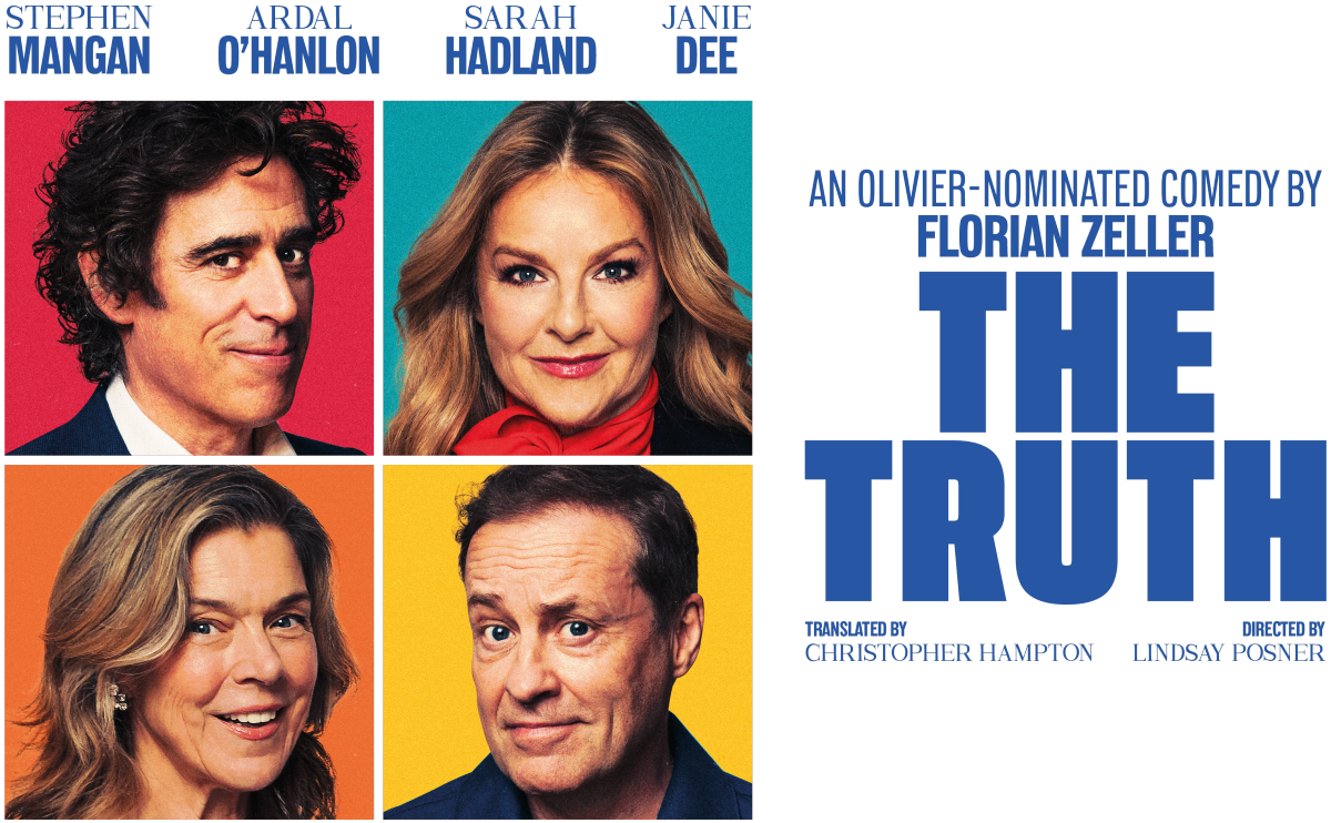 Starring Tony Award-nominated Stephen Mangan returning to the London stage, alongside comedy icon Ardal O’Hanlon (Father Ted, My Hero), Sarah Hadland (Miranda, The Job Lot), and double Olivier Award-winner Janie Dee, The Truth runs in the West End for a strictly limited 14-week season.